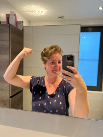 Phoe Sandra, je heb weer bergen verzet. Dat korte koppie staat je wel goed. J.a. joe.stoer en pittig. Die pruik is prachtig. Staat je goed meid. Hou goede moet, je bent een vechter. Die haren groeien wel weer aan. Ooit komt er weer een tijd dat je om je koppie weer lachen kan. Veel sterkte meid. You can do this.😘